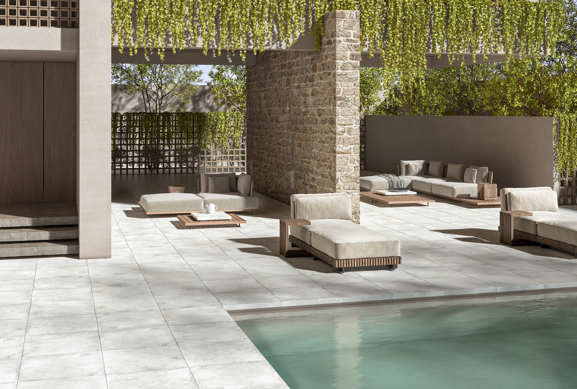 Evoking the natural beauty and tranquility of sedimentary limestone, the Pietra collection is special for its cloud- like structures reminiscent of watercolor, in soft neutral tones, highlighting the uniqueness of the relief. Each surface of this tile represents a marvel of nature in stillness, giving an artistic touch and charisma to the space. Temperamental and full of character, with rough and smooth surfaces, it is ideal for creating powerful interior and exterior spaces.