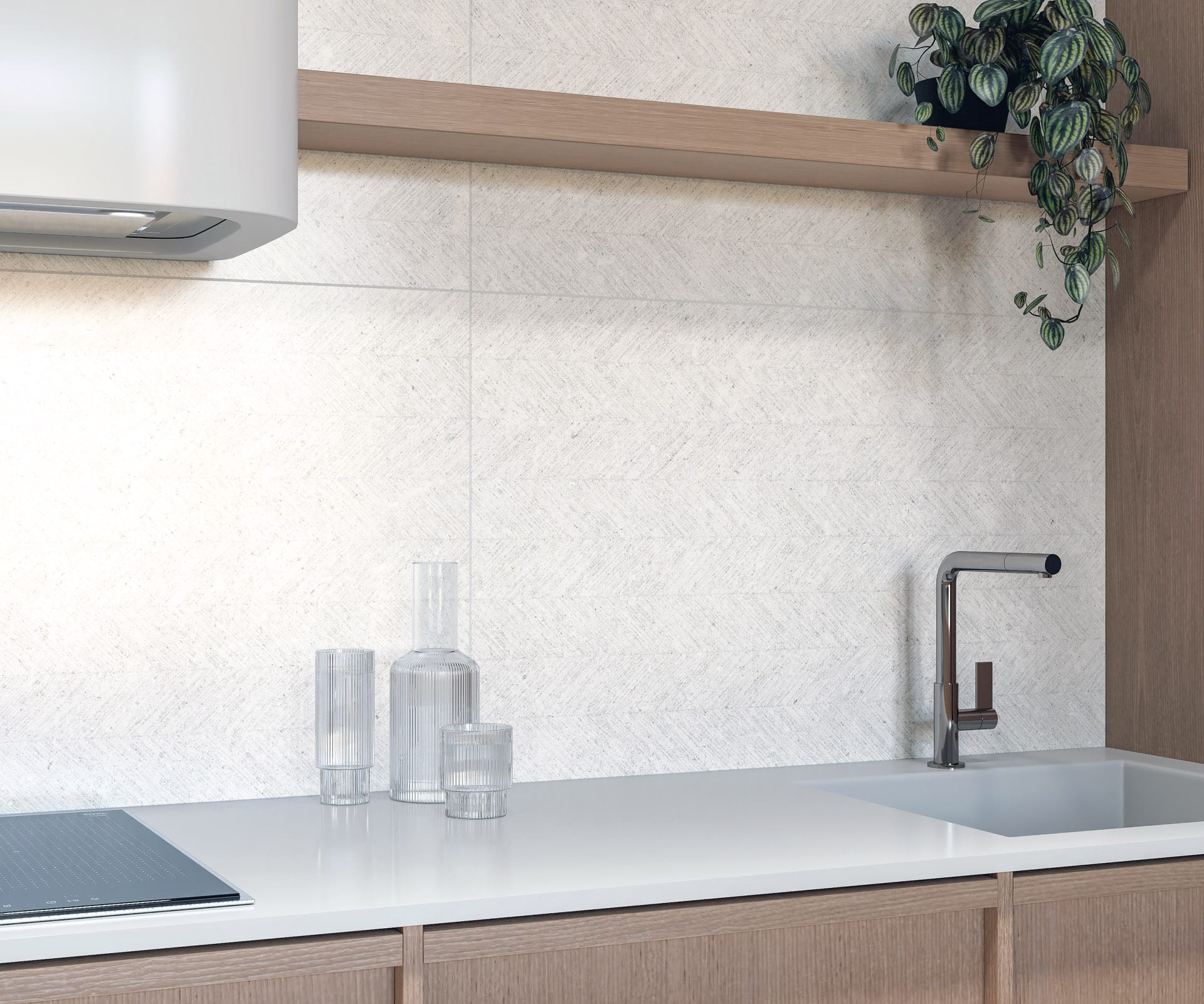 Inspired by ancient stone, its texture mimics rusticity combined with modern decor. Vega offers three distinctive shades; white, which brings purity and freshness; beige, which brings the warmth of Mediterranean landscapes for a pleasant environment and gray, which adds sophistication and modernity to a contemporary environment. Each piece reflects millennia of history and technological innovation, creating a captivating and unique environment.