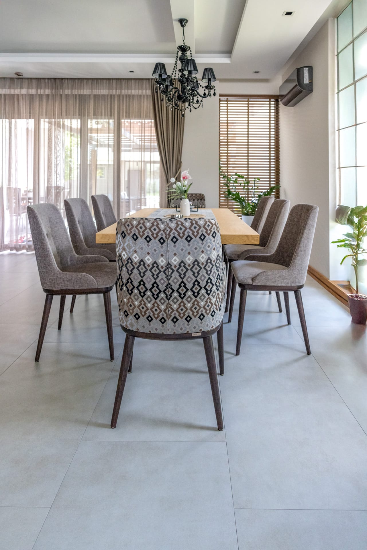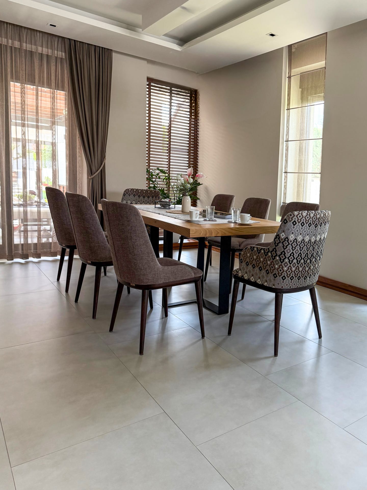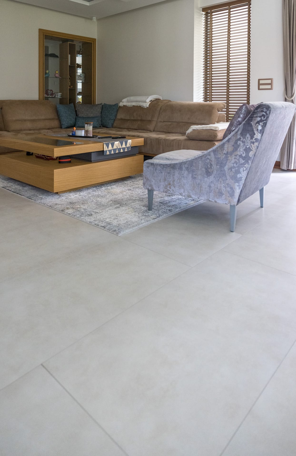 Glavni dnevni prostori: Pločice velikog formata koje stvaraju otvorene i elegantne prostore za porodična okupljanja